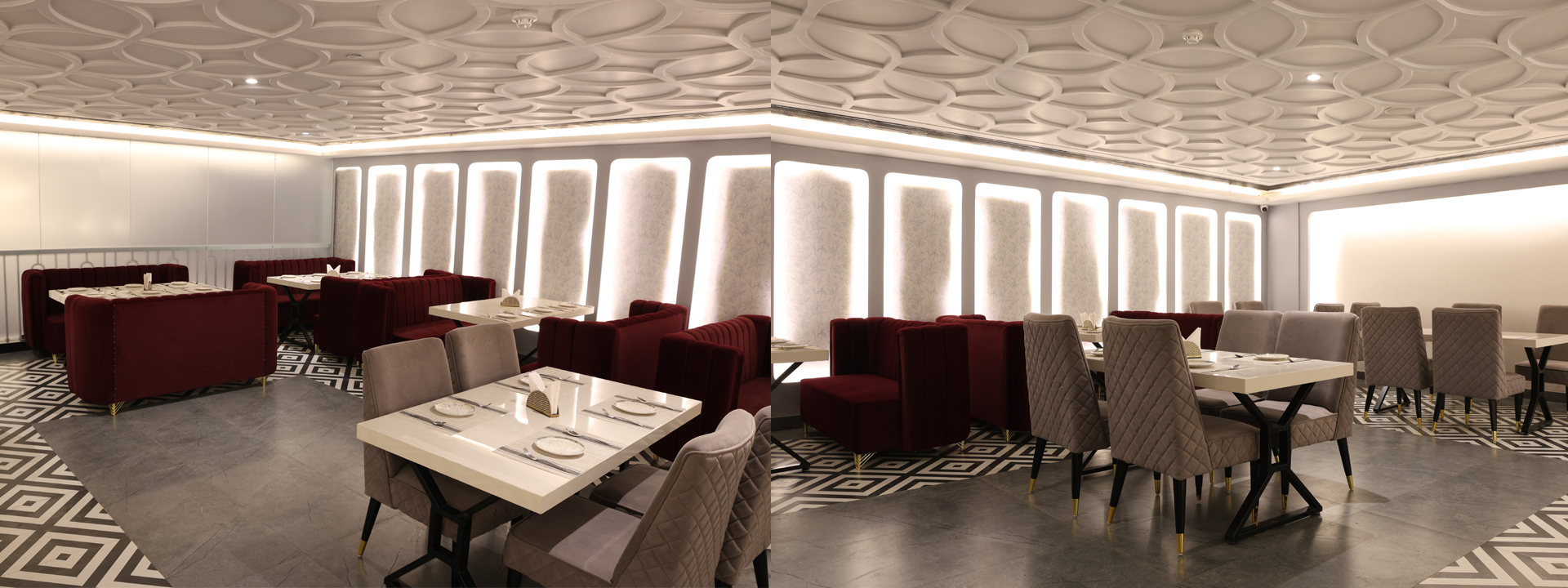 It’s a hall with an area of ………….. sqft. & capacity to accumulate 150-200 guests for a conference or business meetings with a decent pattern of lights which provides mesmerizing view to your event and also it is based upon the Modern architecture emerged at the end of the 19th century from revolutions in technology, engineering, and building materials, and from a desire to break away from historical architectural styles and invent something that was purely functional and new to the society.