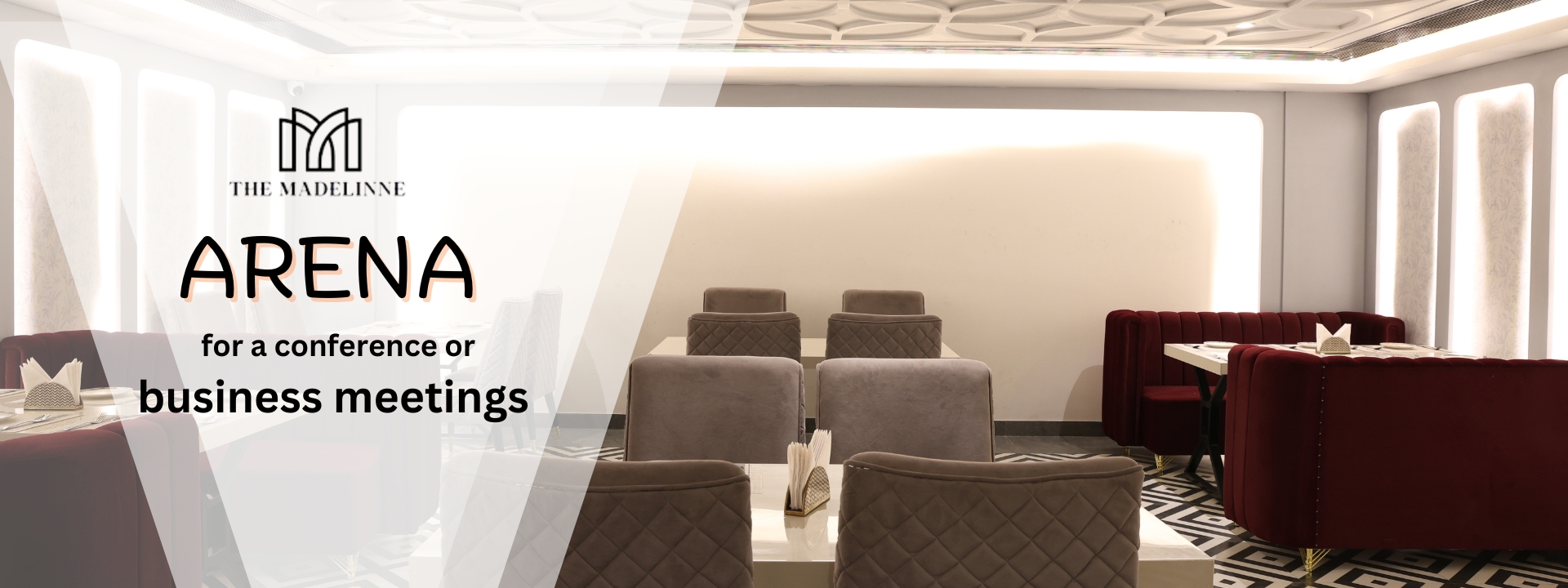 It’s a hall with an area of ………….. sqft. & capacity to accumulate 150-200 guests for a conference or business meetings with a decent pattern of lights which provides mesmerizing view to your event and also it is based upon the Modern architecture emerged at the end of the 19th century from revolutions in technology, engineering, and building materials, and from a desire to break away from historical architectural styles and invent something that was purely functional and new to the society.
